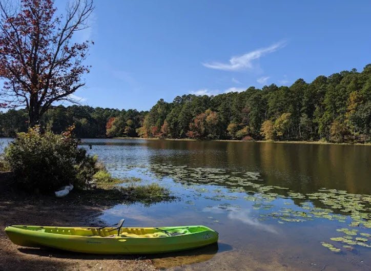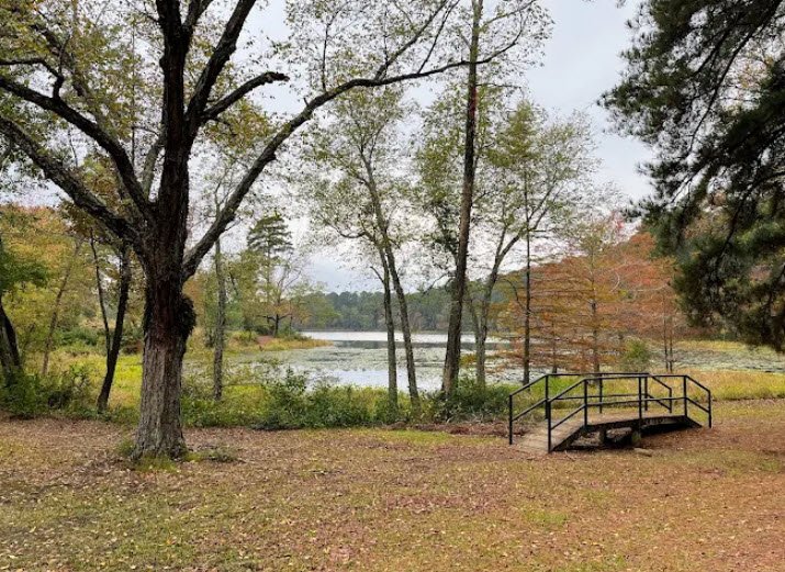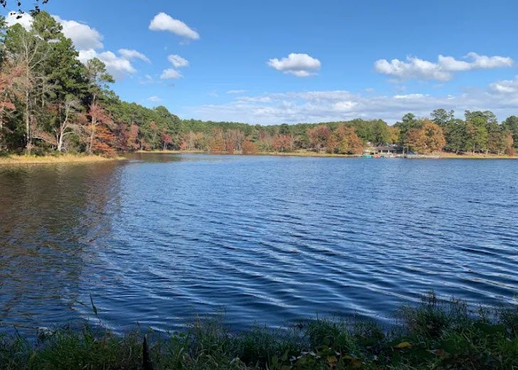 The park centers on 80‑acre Little Pine Lake, a spring‑fed reservoir created and developed by the Civilian Conservation Corps in the 1930s, and includes dense forests of loblolly and shortleaf pine, hardwoods, and wildflowers that give it a lush, “Cathedral of Trees” feel.