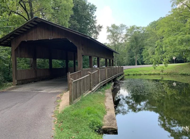 David Crockett State Park spans 1,319 acres near Lawrenceburg in Lawrence County, Tennessee, along Shoal Creek, honoring frontiersman David "Davy" Crockett who lived nearby and began his political career in the area.