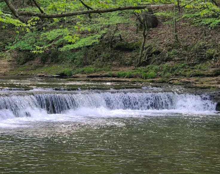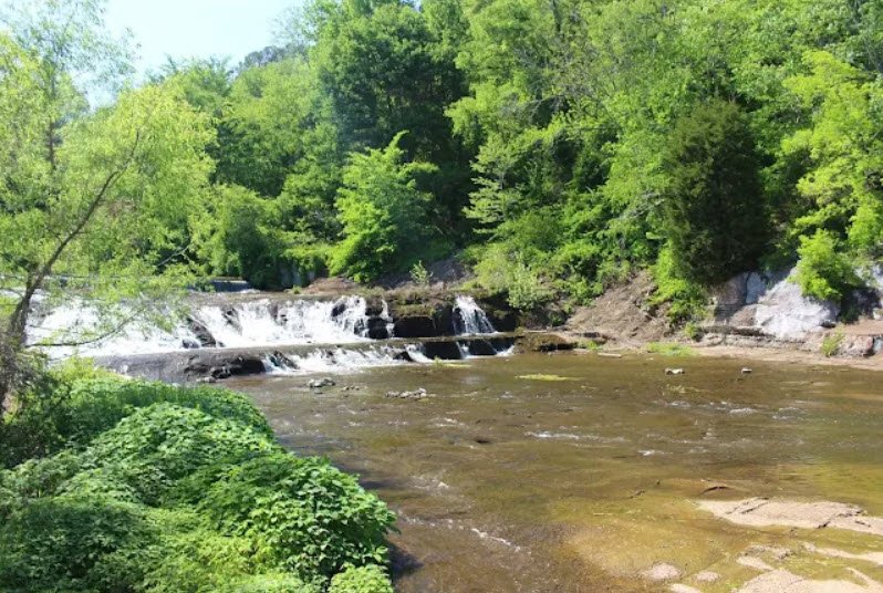 Visitors enjoy over 10 miles of hiking trails like the 1.7-mile Shoal Creek Trail and Overlook Trail with limestone bluffs and falls views, a paved bike path, 107 campsites with hookups, seven fully furnished two-bedroom cabins, and canoe rentals.