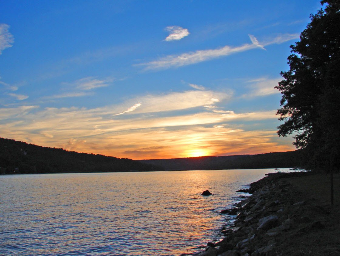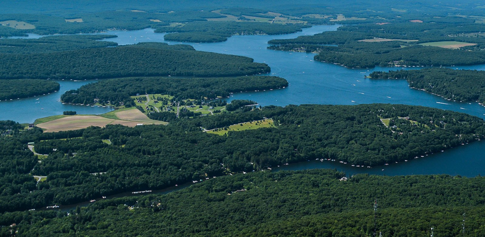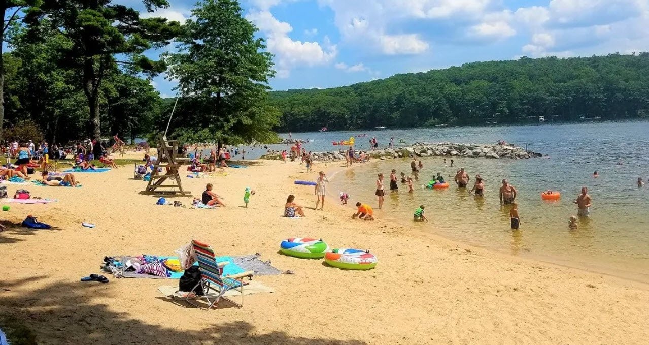 The area features hiking and biking trails, two beaches, a Discovery Center with nature programs, and 112 campsites. Winter activities like skiing and snow tubing are available nearby at Wisp Resort. The lake’s southern half is more rural and quiet, while the northern areas are busier with commercial facilities, boat rentals, restaurants, and marinas.