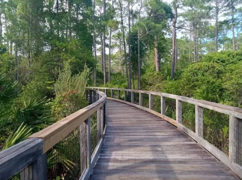 Visitors access a stunning white-sand Gulf beach via dune boardwalk, hike the 1.5-mile nature trail through magnolias and oaks, picnic, swim, fish, birdwatch, and enjoy uncrowded serenity, open daily from 8 a.m. to sunset.
