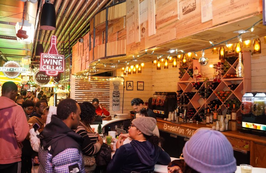It houses more than 40 local and regional food vendors offering diverse cuisines including famous names like Katz’s Delicatessen and Ample Hills Creamery, as well as seafood, soul food, baked goods, and international dishes.