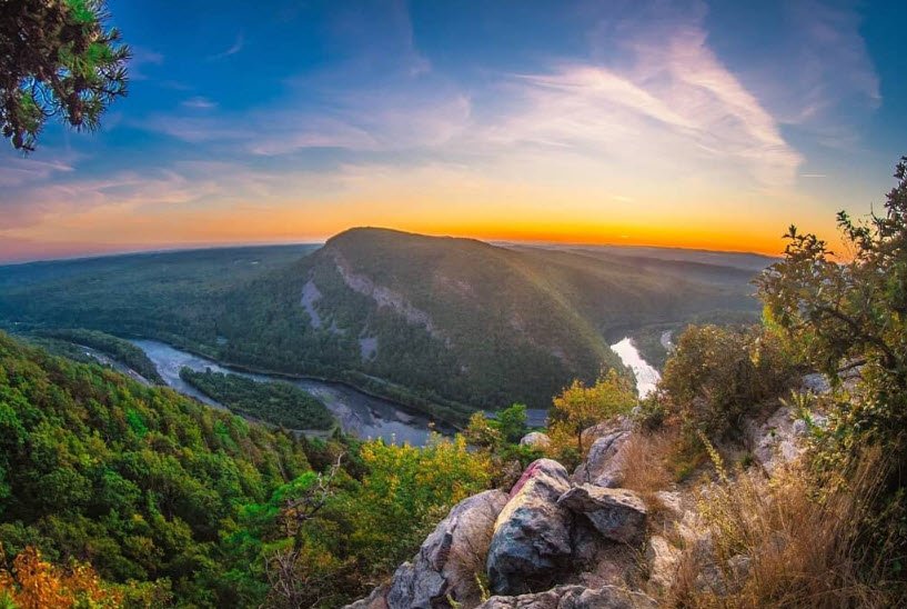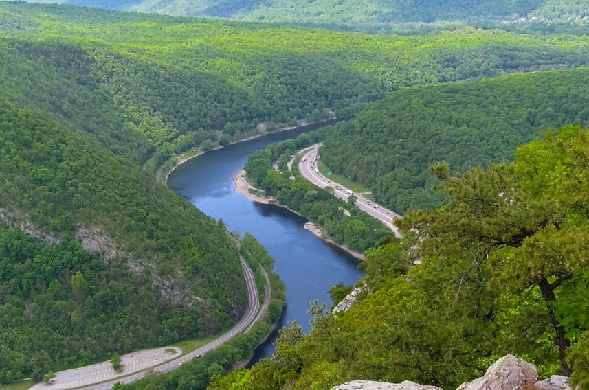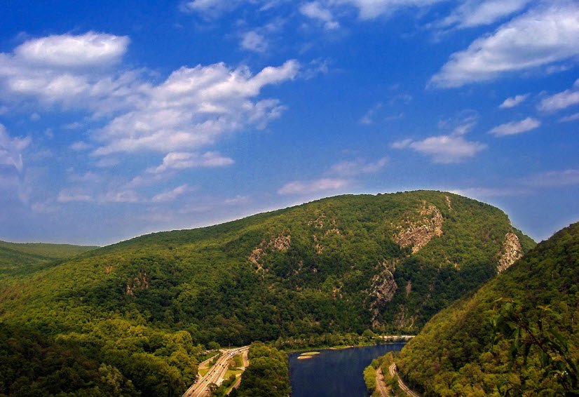 Shaped by millions of years of erosion after ancient mountain-building, it anchors the 70,000-acre Delaware Water Gap National Recreation Area, popular for hiking the Appalachian Trail, canoeing, fishing, rock climbing, and birdwatching amid forests, wetlands, and scenic overlooks.