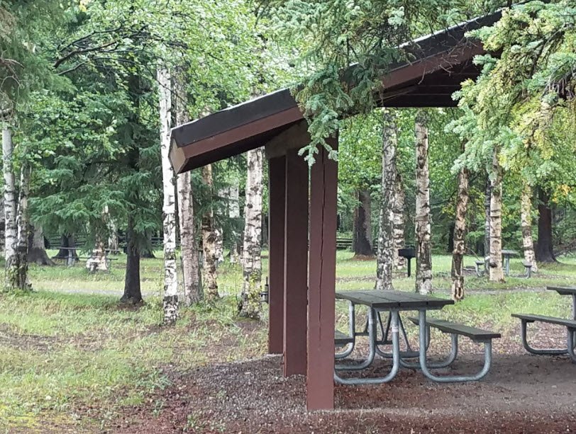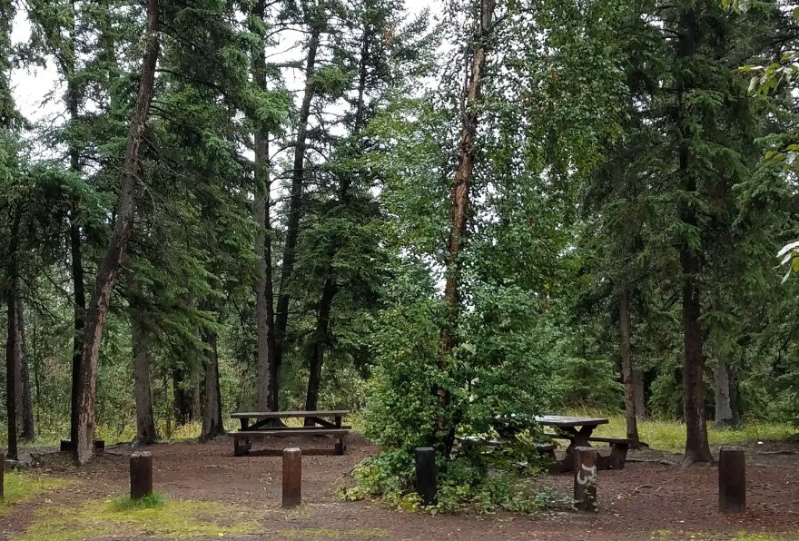 Delta State Recreation Site is a compact 7-acre wooded campground near mile 267 of the Alaska Highway in Delta Junction, Alaska, providing convenient access to the Delta River amid spruce forests and panoramic views of the Alaska Range's snow-capped peaks like Mount Hayes.