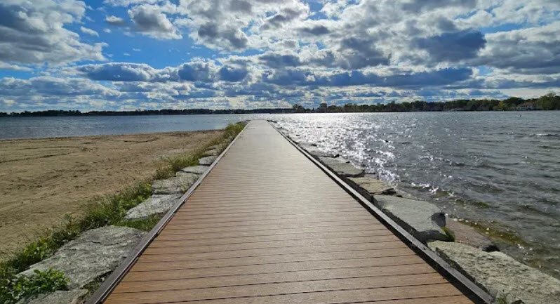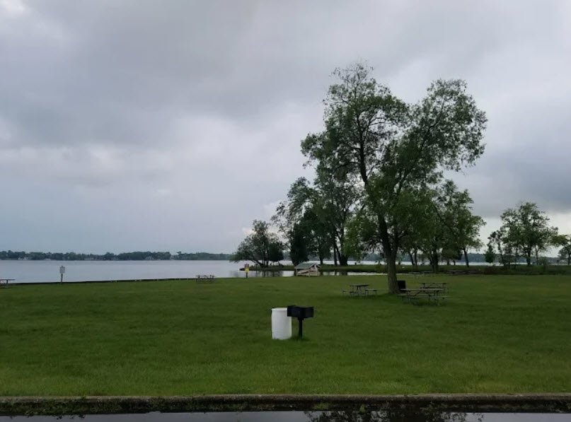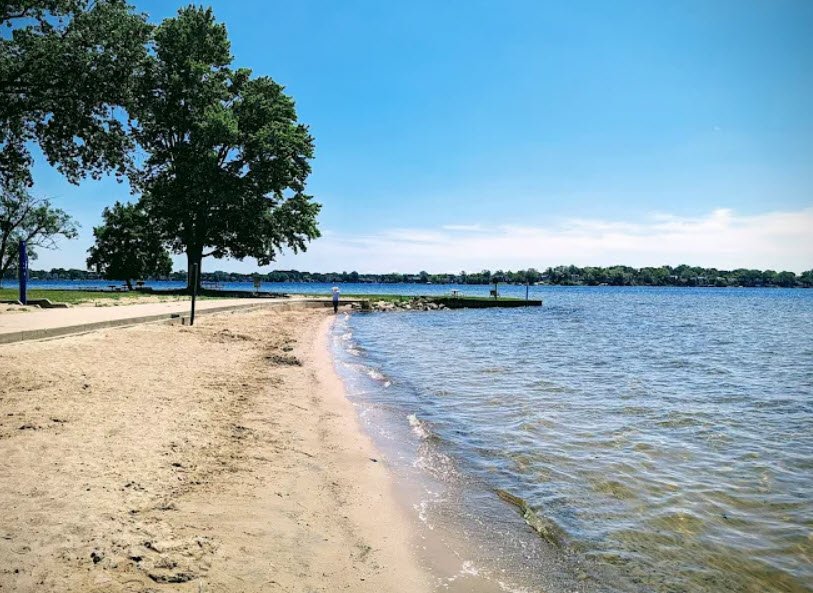 Donated in 1922 by the Dodge Brothers Corporation with the stipulation it remain a public park forever, it features a sandy swim beach, one mile of shoreline, boat launch, fishing docks, picnic areas with shelters, volleyball courts, playground, and wooded paths ideal for short hikes amid oaks and maples.