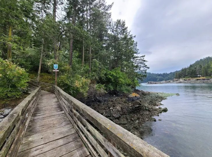 Popular with sea kayakers for its serene coves, tide pools, and views of Mt. Baker across Rosario Strait, the seasonal dock was damaged by storms and remains unrepaired, emphasizing its remote, pack-in/pack-out wilderness appeal.