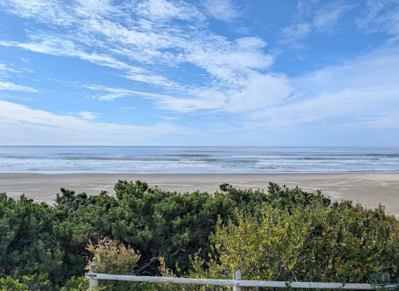 Driftwood Beach State Recreation Site is a 36.7-acre day-use state park in Lincoln County, Oregon, USA, located three miles north of Waldport along U.S. Highway 101, offering free year-round access to a wide, flat sandy beach lined with driftwood, shore pines, and scenic ocean views ideal for beachcombing, picnicking, fishing, kite flying, and sunset watching.