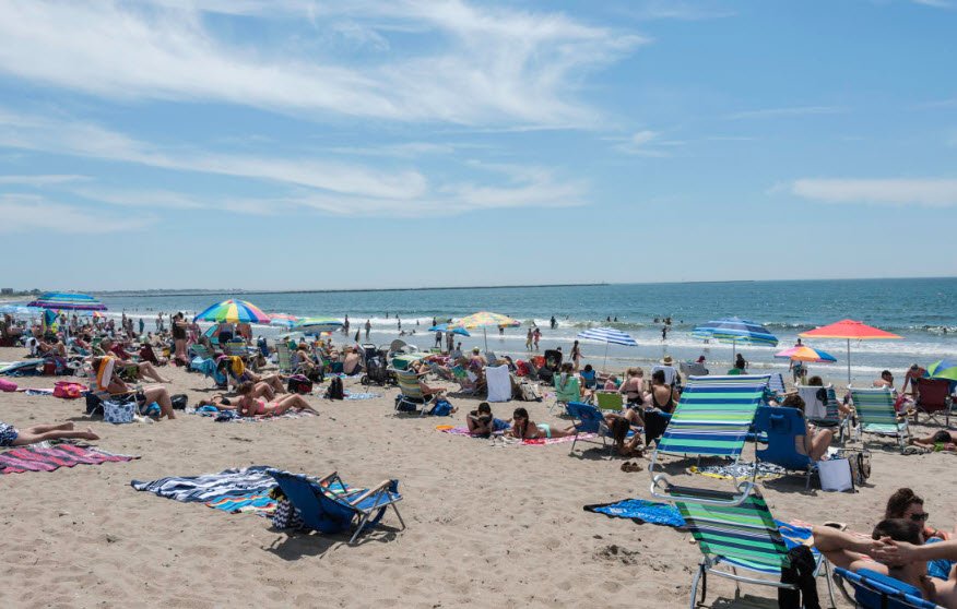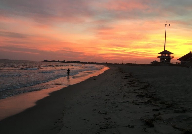 The beach is popular for watching ferries and fishing boats entering and leaving nearby Harbor of Refuge. It has a rich history dating back to the 19th century as a favored surf and relaxation spot, with development over time adding hotels, cottages, and a life-saving station.