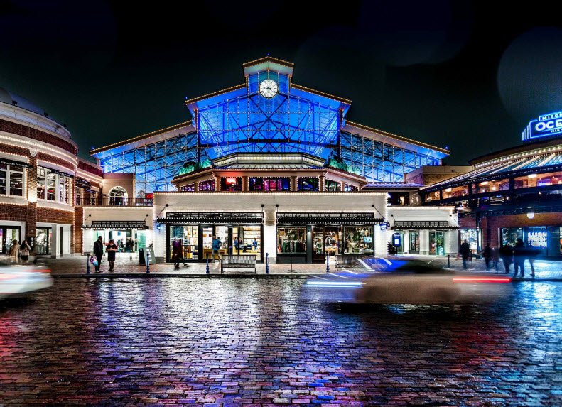 Spanning over 1.7 million square feet across pedestrian-friendly streets, a central town square with interactive fountains, parks, and metered parking, it features more than 300 stores including luxury brands like Louis Vuitton and Neiman Marcus, dining options, Ohio's largest movie theater, hotels, apartments, and entertainment like comedy clubs.