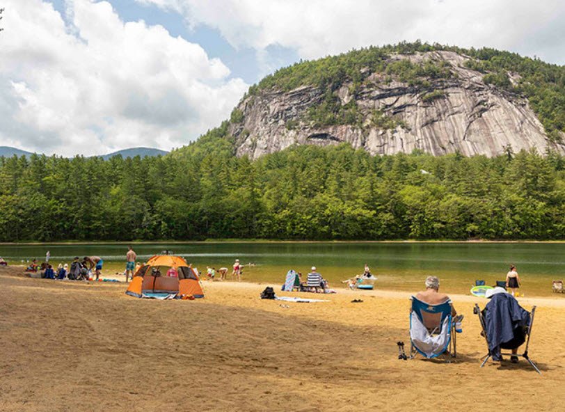 Echo Lake State Park in North Conway, New Hampshire, features a 15.7-acre lake surrounded by a family-friendly beach area with swimming and picnic facilities.