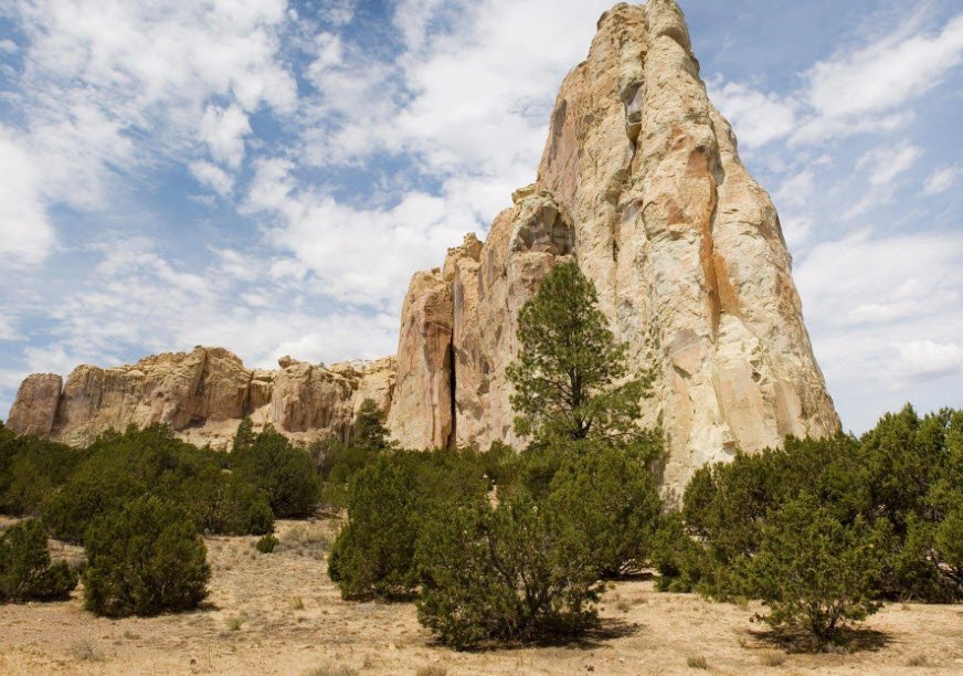 El Morro National Monument in western New Mexico protects a massive 200-foot sandstone bluff known as Inscription Rock, where a reliable waterhole at its base drew travelers for centuries, leading over 2,000 petroglyphs by Ancestral Puebloans from 1275-1350 AD and inscriptions by Spanish explorers like Juan de Oñate in 1605—saying "Paso por aquí"—plus Americans including Kit Carson up to 1906.