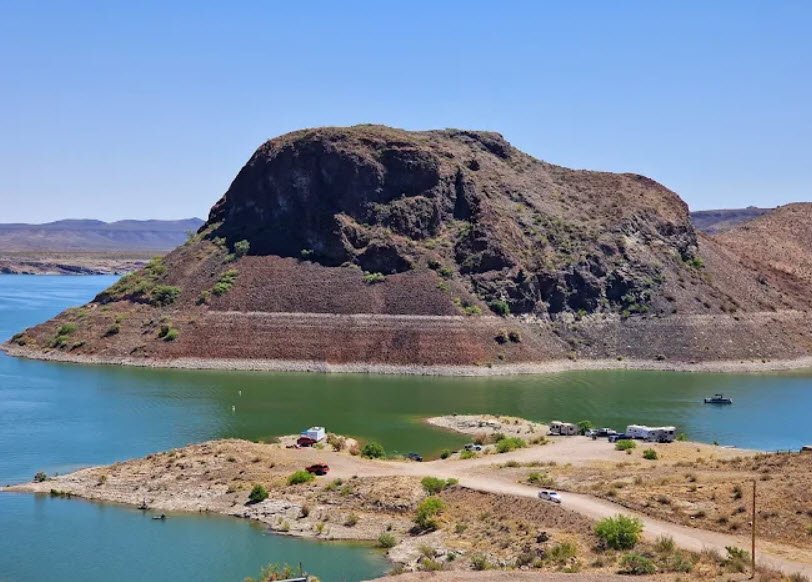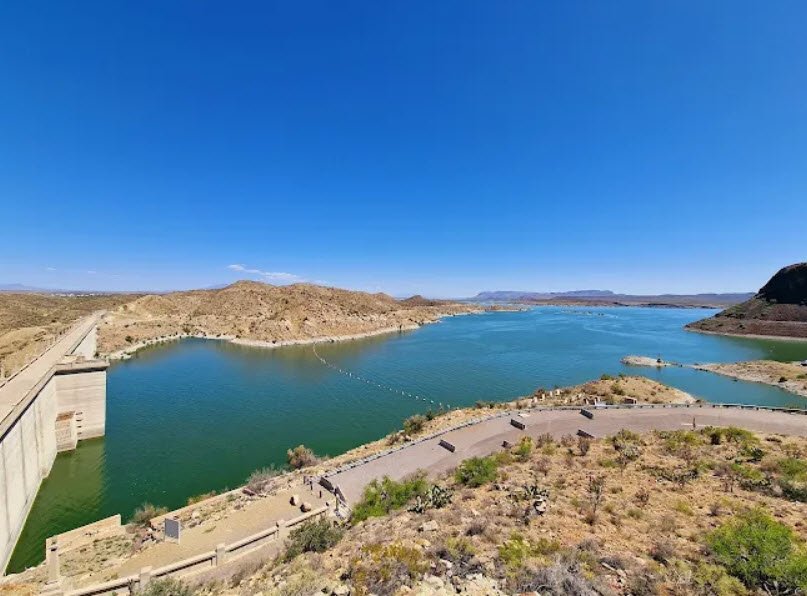 Formed by a massive 1916 dam for irrigation, flood control, and power, the 40-mile-long lake with 200 miles of shoreline draws over a million visitors yearly for boating of all kinds, record bass and crappie fishing, swimming on sandy beaches, scuba diving, camping at developed RV sites, and birdwatching for pelicans and waterfowl. The park offers marinas, picnic areas, playgrounds, restrooms, and historic damsite structures amid desert landscapes year-round.