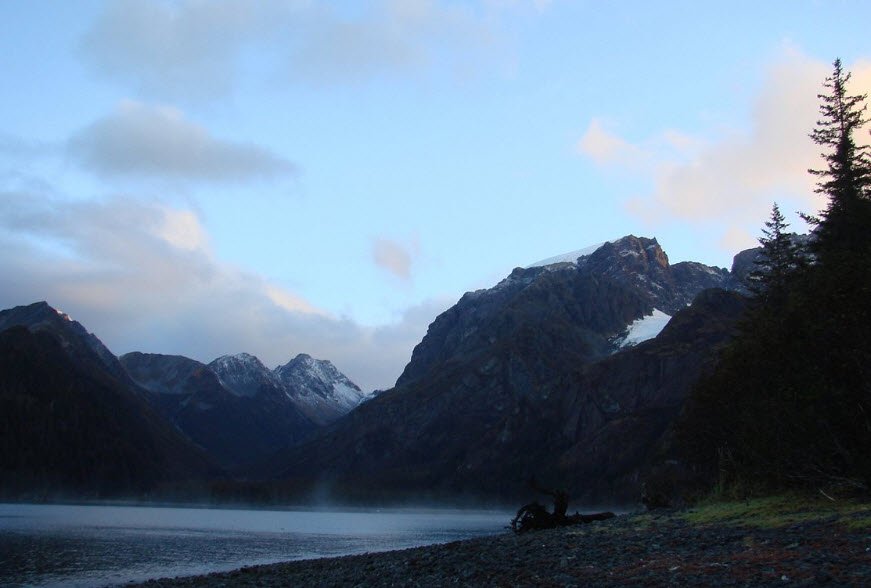It offers primitive tent camping for up to 10 sites on flat beach rock and moss at the cove head—avoiding contaminated pond water—plus kayaking, clamming in the lagoon at full tide for small boats, and wildlife viewing in estuaries, eelgrass beds, and salmon spawning areas, highlighted by a natural arch on the east shore and views of Tebenkof Glacier.