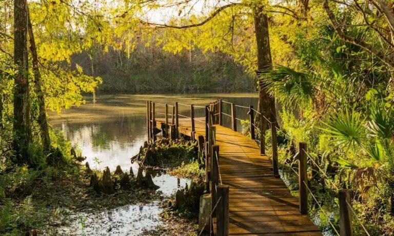 This subtropical wilderness shelters rare species like Florida panthers, black bears, indigo snakes, and 44 orchids amid 14 natural communities including prairies, sloughs, and coastal estuaries. Visitors walk the 2,500-foot Big Cypress Bend Boardwalk to an alligator pond overlook, drive or bike the 11-mile Janes Memorial Scenic Drive, hike rugged Jones Grade trails and East River Ferry Road, canoe blackwater streams, fish lakes, and join guided tram tours for orchid spotting.