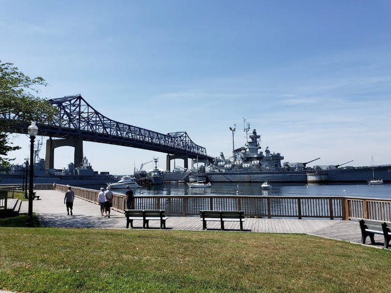 Fall River Heritage State Park spans 14 acres along the Taunton River in Fall River, Massachusetts, beside the Charles M. Braga Jr. Memorial Bridge and near Battleship Cove, home to the USS Massachusetts battleship.