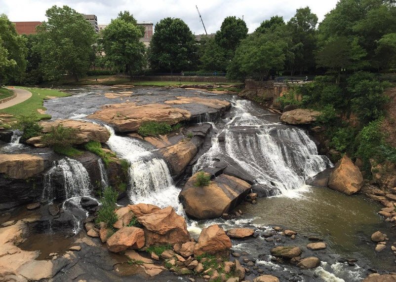 Falls Park now serves as a vibrant green space with public art, gardens, signage illuminating its rich history, and serves as a hub for community events and tourism, blending Greenville’s industrial past with natural beauty and modern urban life.