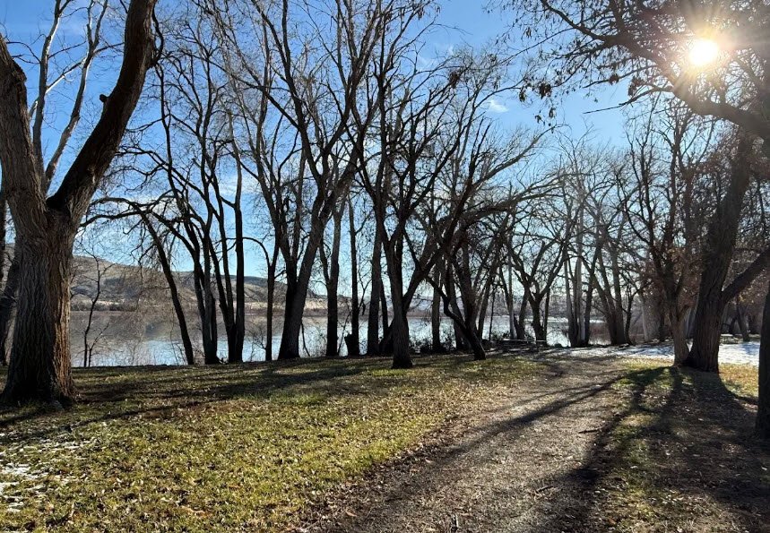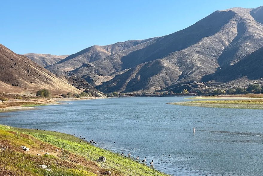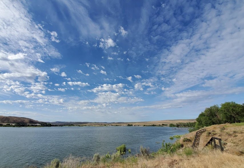 It offers 91 RV sites with electrical/water hookups, 30 tent sites, two cabins, a hiker/biker camp, showers, flush toilets, dump station, boat ramp for fishing walleye and bass, horseshoe pits, volleyball, basketball, and shaded picnic areas amid desert cottonwoods. Historic kiosks with restored wagons highlight pioneer history, while year-round access supports boating, swimming, and wildlife viewing in this serene high-desert oasis.