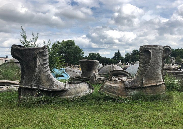 The FAST Fiberglass Mold Graveyard in Sparta, Wisconsin, is a unique and quirky outdoor storage area behind the FAST Fiberglass company where hundreds of retired molds for large fiberglass statues are kept.