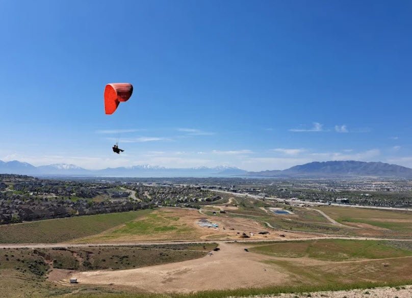 Flight Park State Recreation Area in Lehi, Utah, near Point of the Mountain, is a premier site for hang gliding and paragliding, renowned worldwide as one of the best training locations due to consistent winds and launch options from both sides of the ridge. Managed jointly by Utah State Parks and the Utah Hang Gliding and Paragliding Association, it features designated launch and landing zones, a model airplane airfield, picnic areas, restrooms, and primitive camping atop the mesa at 5,146 feet elevation, open year-round from dawn to dusk with no entrance fee. Accessed via I-15 Exit 288 to Minuteman Drive, it draws pilots and spectators for thrilling flights over scenic valleys toward Salt Lake City and the Wasatch Front.