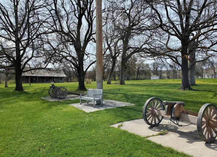 Built in 1856 by U.S. Army Colonel George Wright under Major Robert S. Garnett as a refuge for settlers during conflicts with Yakama tribes, the pre-Civil War fort operated until 1859, later serving as an Indian agency and boarding school until 1922. It features restored original buildings like the commandant's house and blockhouse, an interpretive center on military and Native American history, picnic areas, and hiking trails amid oak groves and springs, listed on the National Register of Historic Places.