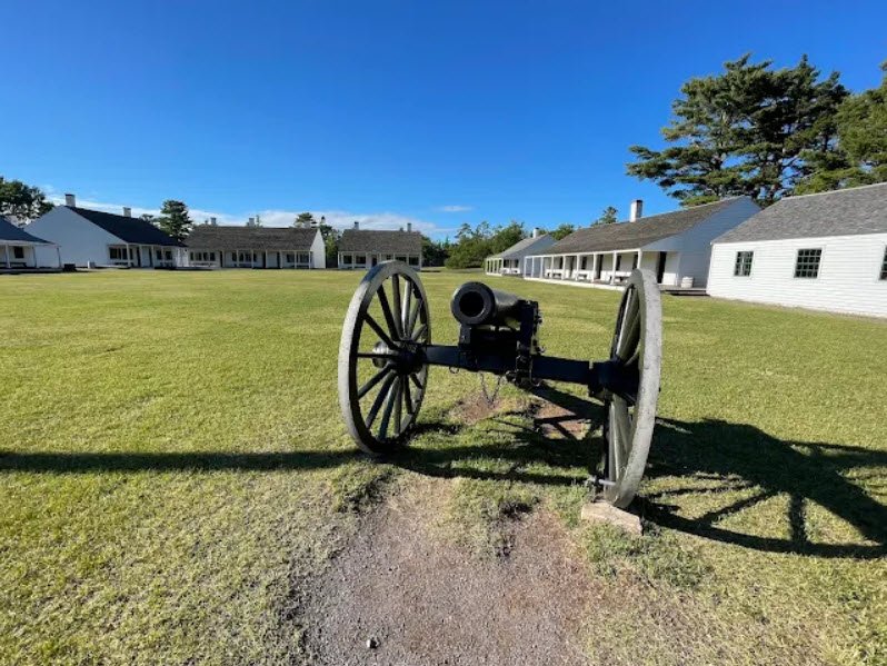 Abandoned by 1870 and established as a state park in 1923, it features 19 surviving buildings—including 12 originals—with living history programs from June to August reenacting mid-19th-century frontier military life through costumed interpreters, exhibits, and demonstrations.