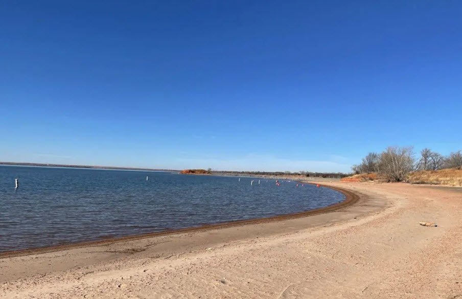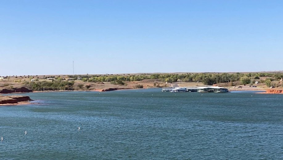 Visitors enjoy fishing, boating, swimming at Sunset Beach with shaded palapas, hiking and biking trails, horseback riding, disc golf, wildlife viewing including birds and monarch butterflies, and stargazing in this western Oklahoma outdoor hub.