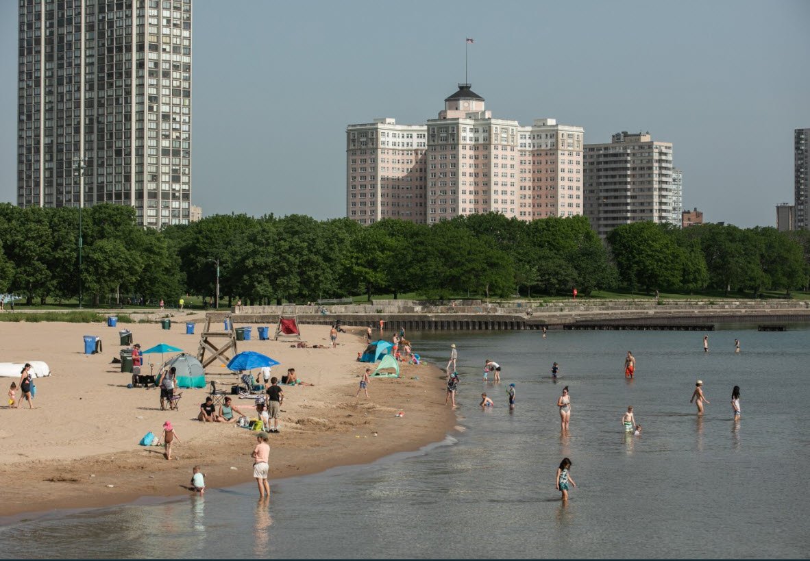 The beach is popular for swimming, sunbathing, picnics in the grassy park area with shade trees, volleyball, walking, and enjoying scenic views of the Chicago skyline and the lake. It also hosts seasonal events like the Full Moon Jam, and is dog-friendly, making it a versatile spot for relaxation and outdoor fun close to the city.