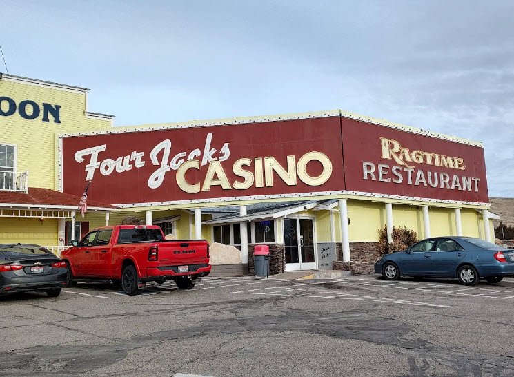 Four Jacks Hotel & Casino is a small, no-frills gaming spot in Jackpot, Nevada, near the Idaho border, opened around 1986 with about 60 affordable rooms featuring basics like cable TV, Wi-Fi, and queen beds.