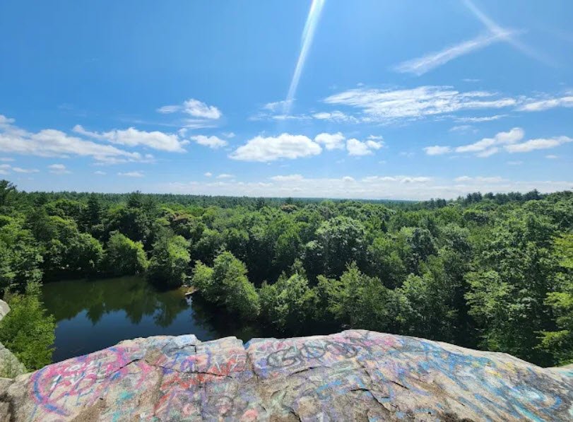 Managed by the Department of Conservation and Recreation, it features Profile Rock—a granite formation resembling Chief Massasoit—and a 227-acre Wampanoag Pocasset reservation, alongside 25–50 miles of multi-use trails for hiking, mountain biking, horseback riding, off-road vehicles like dirt bikes, cross-country skiing, snowshoeing, and restricted hunting.