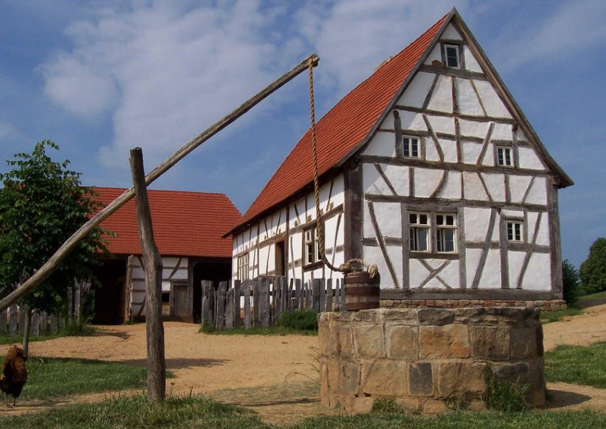 It tells the story of early immigrants and their descendants by showcasing traditional rural buildings and lifestyles from England, Germany, Ireland, West Africa, and Native American cultures. The museum features authentic homes and farms that were dismantled and relocated to the site, along with costumed interpreters who demonstrate historic crafts, farming, blacksmithing, and daily life from colonial times to the 19th century.