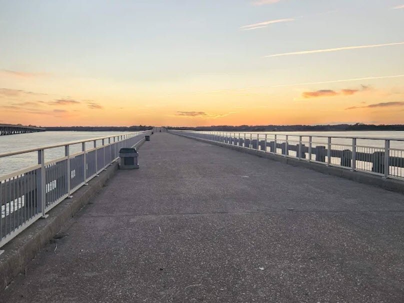 Open daily from 8 a.m. to sunset with a $2 per person fee, it draws anglers, families, walkers, and photographers to its clean, safe platform with bait shop, restrooms, ample parking, and nearby sandy shores, though night fishing is prohibited and southern access is closed due to erosion.