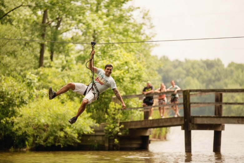 Go Ape Zipline and Adventure Park in Delaware, located at Lums Pond State Park in Bear, offers an exhilarating outdoor experience featuring ziplines up to 700 feet long, Tarzan swings, and various tree-to-tree crossings.