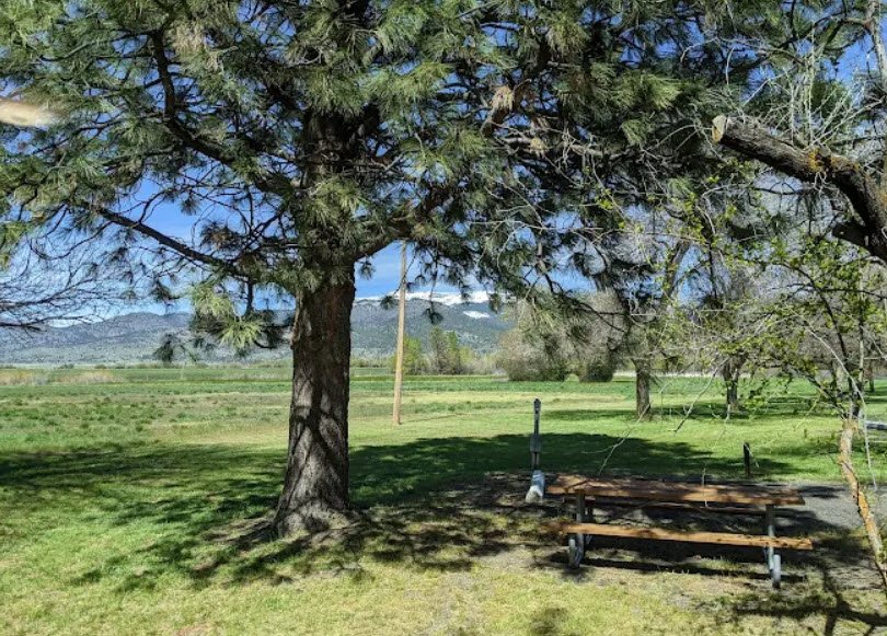 Its 48 first-come, first-served sites with picnic tables, fire rings, flush toilets, hot showers, and an RV dump draw wildlife like mule deer herds, grebes, curlews, and quail, especially in spring when Pine Creek flows through. Open mid-April to mid-October without reservations, it's ideal for birdwatching, stargazing under clear skies, tent camping near a historic orchard, and exploring nearby Warner Mountains or Hart Mountain Refuge.
