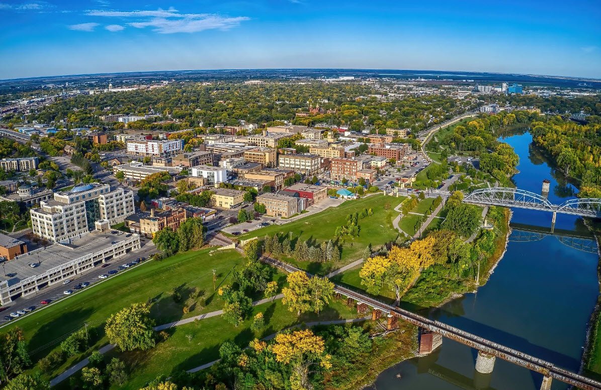 Home to the University of North Dakota since 1883, it developed a bustling downtown with brick buildings after 1890s fires, faced recurring floods like the devastating 1997 event that flooded the city and sparked a massive evacuation and rebuild with the Greenway riverfront parks, and hosts Grand Forks Air Force Base since the 1950s boosting its economy.