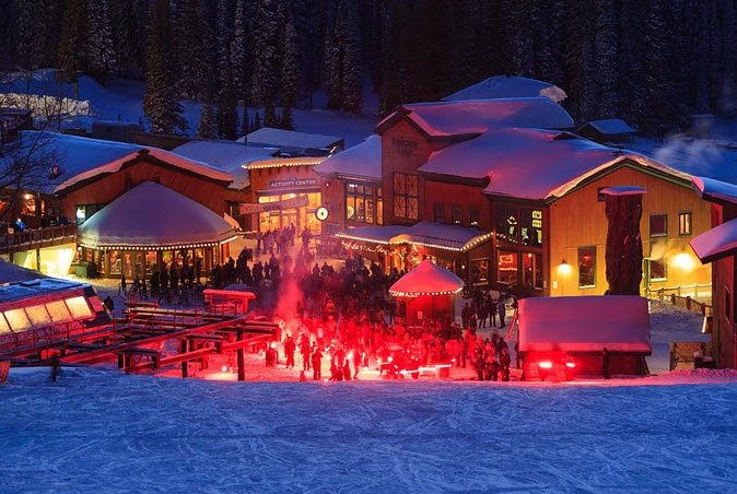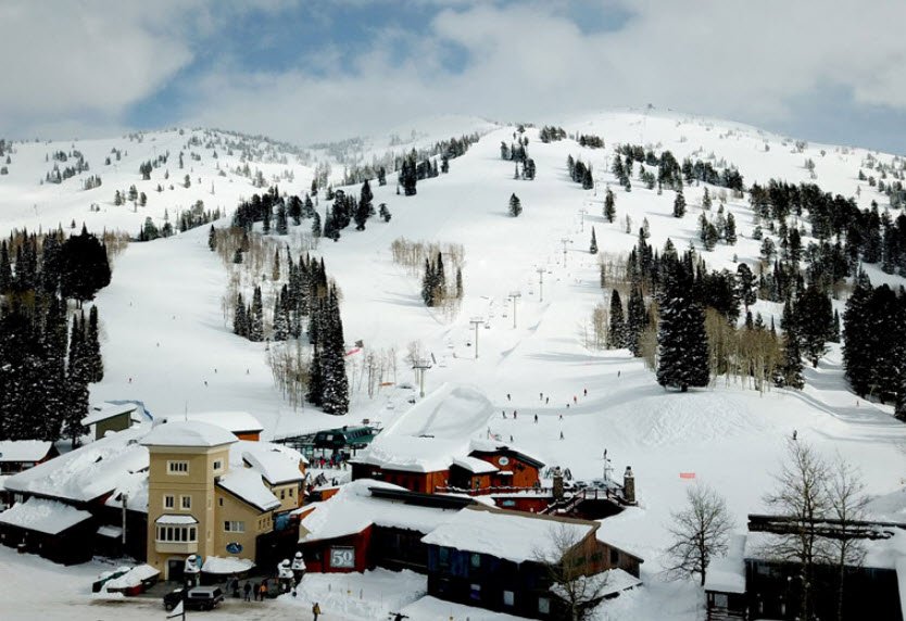 The resort offers diverse skiing and snowboarding options with a vertical drop of 2,270 feet and terrain primarily suited for intermediate and advanced skiers, along with facilities such as a high-speed six-pack chairlift, quads, and terrain parks. Established in 1969 by local Idaho residents to support community and economy, the resort features rustic lodging, a spa, retail stores, and conference spaces.