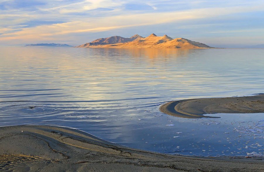 The Great Salt Lake in Utah is the largest saltwater lake in the Western Hemisphere and a remnant of the prehistoric Lake Bonneville, which covered much of present-day Utah during the ice ages about 30,000 years ago.