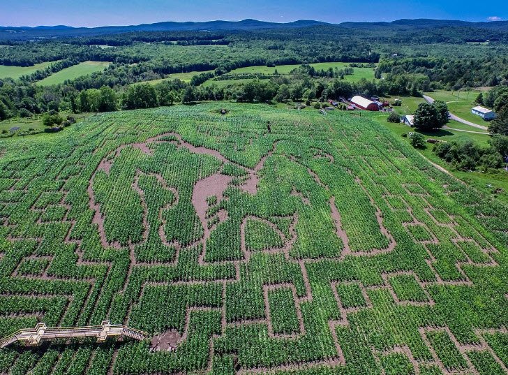 The Great Vermont Corn Maze in Danville, Vermont, is a large, 24-acre outdoor maze recognized as one of the top corn mazes in America and the largest in New England.