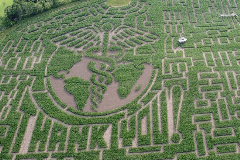 Every year, the maze features a new, intricate design that can take between two to three hours to complete, with towering corn walls often reaching 10 feet high that offer no chance to see over but include several observation bridges.