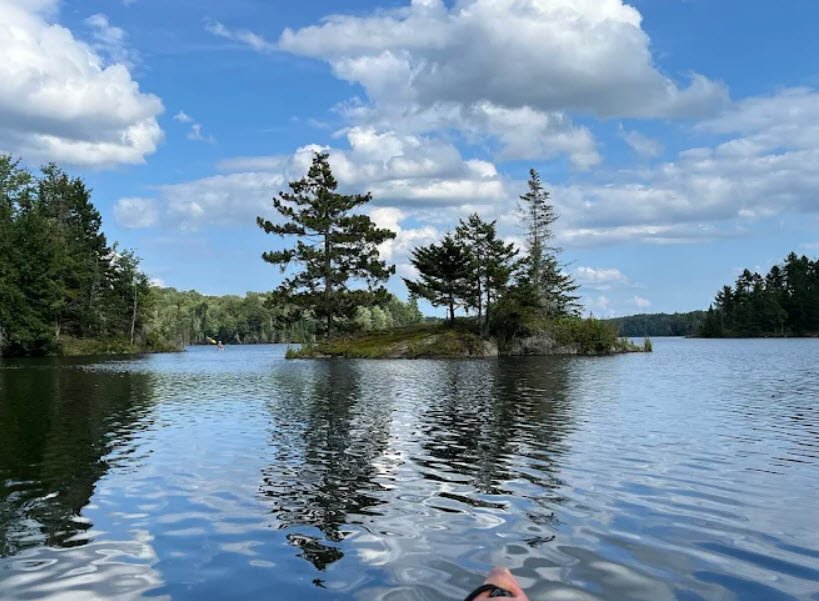 It emphasizes low-impact recreation with remote boat-access-only campsites (28 total, reachable by paddle 1-2 miles from launch), swimming, fishing for bass, perch, and brook trout, quiet boating limited to human-powered craft or electric motors up to 5 mph, picnicking at designated sites, hiking, and winter pursuits like skiing.