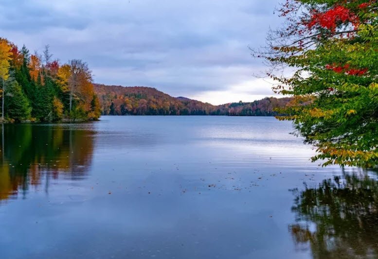 Green River Reservoir State Park spans 5,500 acres around the 653-acre Green River Reservoir in Hyde Park, Vermont, celebrated for its pristine, undeveloped shoreline—one of the longest in the state—within lush forests, wetlands, and islands teeming with wildlife like loons and deer.