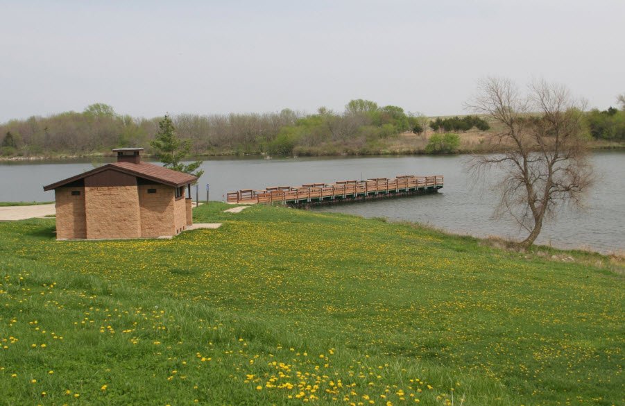 Green Valley State Park centers on a 390-acre artificial lake in Union County, southwest Iowa, USA, created in 1953 as part of a post-WWII recreation project and renovated in 2008 with stocked populations of largemouth bass, crappies, bluegill, walleyes, and channel catfish.