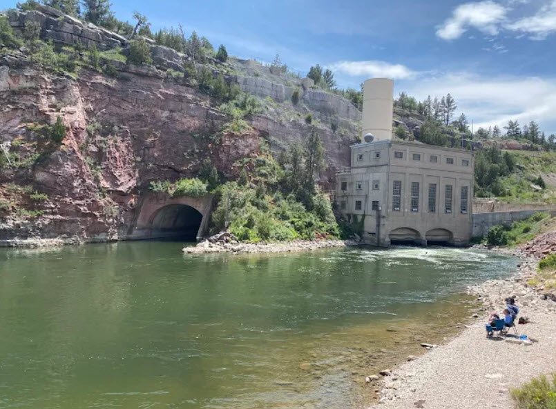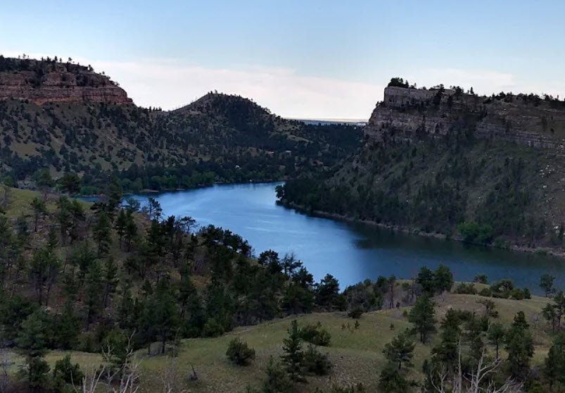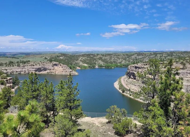 Guernsey State Park surrounds Guernsey Reservoir on the North Platte River northwest of Guernsey, Wyoming, offering 6,000 acres of public land with boating ramps, fishing for walleye and perch, swimming beaches, and 19 campgrounds featuring 250 sites equipped with picnic tables, fire grills, and comfort stations.