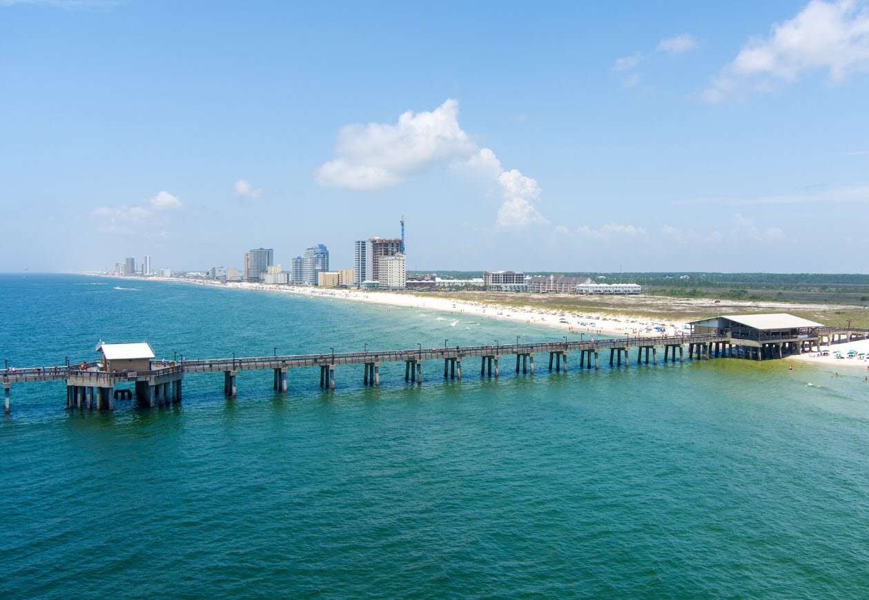 With a population of around 15,000 as of 2020, it serves as a popular vacation destination attracting hundreds of thousands of tourists each year, particularly in summer and winter, including many "snowbirds" who spend months there escaping colder climates. The city grew from a small fishing community into a thriving coastal resort, supported by attractions like Gulf State Park, a vibrant dining and shopping scene, and events such as the National Shrimp Festival.