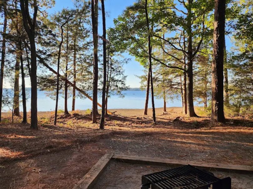 Established in 1972 through a lease from the U.S. Army Corps of Engineers, it features spacious RV and tent sites mostly right on the water, hike-in primitive camping, over 12 miles of hiking and biking trails through rolling woods with diverse trees like pines, oaks, and dogwoods, plus picnic areas and a boat ramp.
