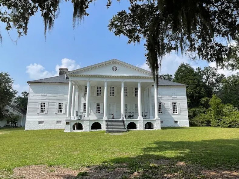 Hampton Plantation State Historic Site in McClellanville, South Carolina, preserves a 300-acre colonial-era rice plantation established in 1735 along Wambaw Creek, a tributary of the South Santee River, with its Georgian-style mansion—one of the finest wood-frame examples featuring an early temple-front portico—expanded by the Horry and Rutledge families using enslaved African labor to cultivate "Carolina Gold" rice.