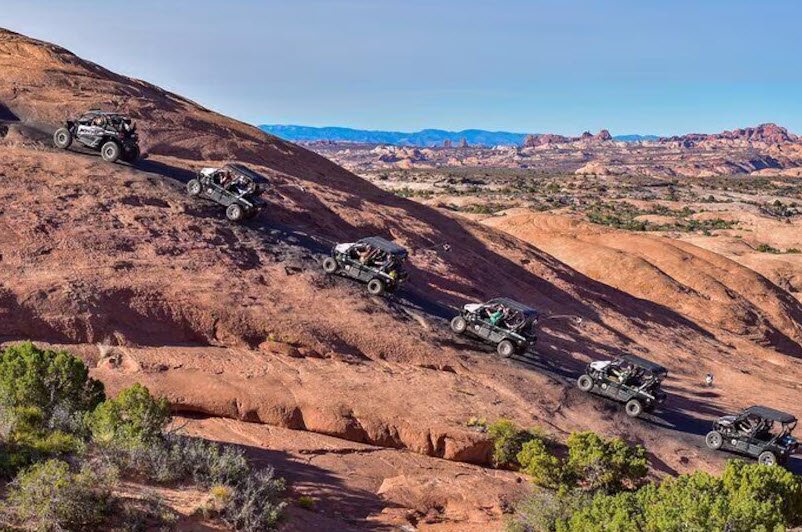 The trail is accessible by guided tours or self-drive vehicles, and while it's suitable for skilled off-roaders, it demands careful navigation and proper equipment due to its rough and exposed terrain. Hell's Revenge is considered one of Moab's premier off-road experiences, combining thrills, stunning scenery, and a chance to explore the unique geological features of Utah's red rock country.