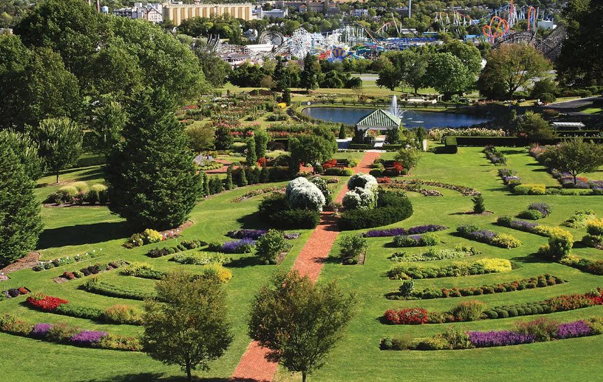 Located atop a hill overlooking Hersheypark, the gardens feature a stunning collection of flowers, shrubs, and rare trees, along with a renowned rose garden with over 5,000 roses and more than 800 varieties. Over the years, Hershey Gardens has expanded to include themed gardens, seasonal displays, and a tropical Butterfly Atrium with hundreds of butterflies and tropical plants.
