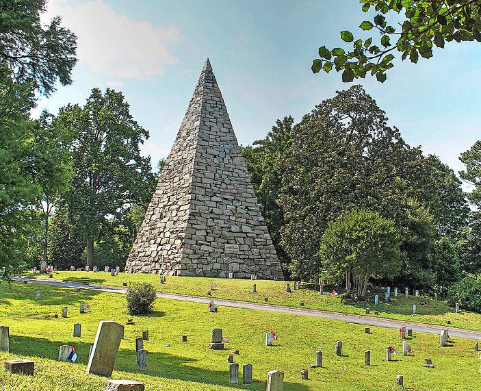 The cemetery features notable monuments including a 90-foot granite pyramid honoring Confederate war dead and beautifully landscaped grounds with winding roads and shaded paths. Hollywood Cemetery's significance grew during the Civil War due to Richmond's role as the Confederate capital, leading to many soldier burials and memorial ceremonies such as Confederate Memorial Day.