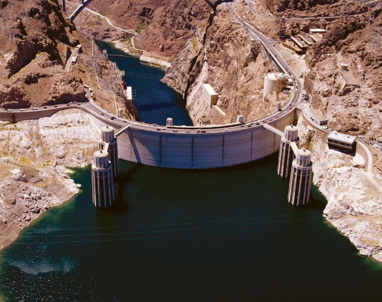 Constructed during the Great Depression between 1931 and 1936, it was dedicated in 1935 by President Franklin D. Roosevelt. The dam stands 726 feet tall and stretches 1,244 feet along the crest, holding back Lake Mead, one of the largest artificial reservoirs in the world. It serves multiple purposes including flood control, water storage for irrigation and domestic use, and hydroelectric power generation with a capacity of over 2,000 megawatts, supplying electricity to millions in Arizona, Nevada, and California.
