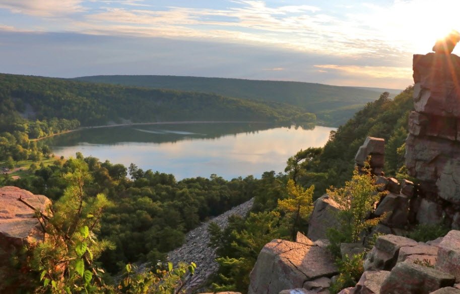 The trailhead offers a parking area and well-marked paths leading hikers through scenic glacial landscapes including rolling hills called kettles and moraines, with views of hardwood forests, prairies, and wetlands. It provides opportunities for hiking, wildlife watching, and exploring unique natural formations formed about 10,000 years ago when glaciers shaped the region.